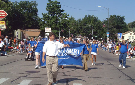 Congressman Lee Terry, with many supporters, walked in Bellevue's Arrows to Aerospace Parade.